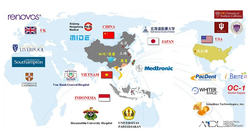 從2015年起三鼎生技即與多個國際知名的學術團體與學校簽訂MOU,三鼎生技的獨特3D 逆向重建技術與奈米生醫材料專長結合國外合作大學研究 能量,進行實質國際跨領域學術合作,藉由雙方密集與積極的往來與交流,增進研發能量達到雙贏的效果,其主要合作項目包括共同開發生物支 架、3D人工植入物、骨幹細胞再生合作計畫、進行3D列印植入醫材開發、進行顱顏顎面重建醫材開發.等。三鼎生技亦開發生物性骨粉結合 Hydroxyapatite、Si及Collagen,分別利用於軟、硬組織之組織再生,與國外廠商合作進行3D 生物列印與輔具重建研究,未來期望可在臨床治療上 提供客製化之填補物,為全國病患帶來福祉。